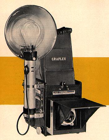Carrying Case The Graflex Deluxe case, made of leather, holds the camera, Graflite flash equipment, film holders, and smaller accessories. Furnished with shoulder pad and strap. |